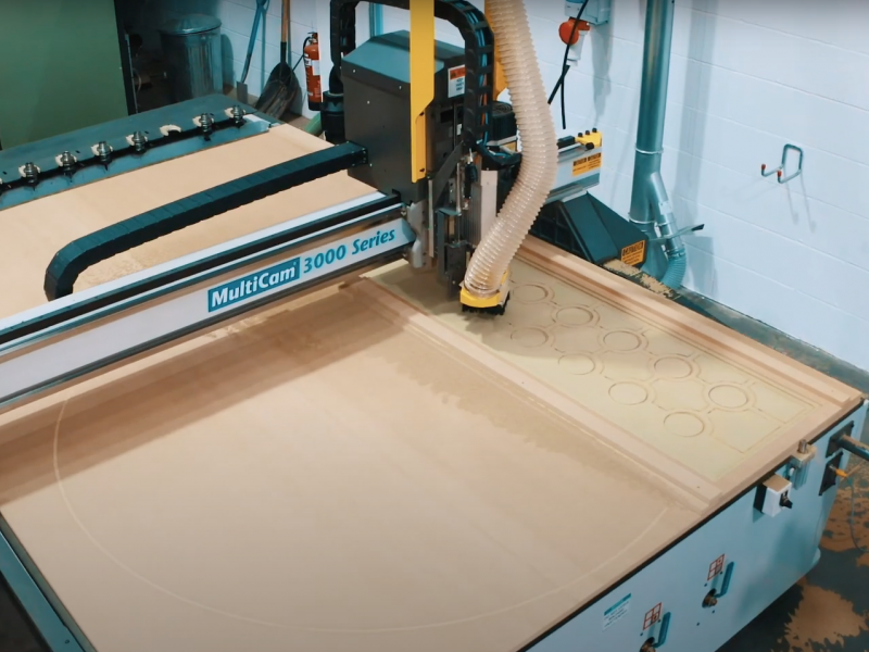A tedious task, especially if you are working on a big job, is to drill pilot holes for shelving. Accuracy is critical – you don’t want wonky shelves! Then it’s the actual drilling, which is time-consuming. With the CNC machine, you can easily choose the number of holes you want in a given area, and the machine takes care of the rest. The same goes for hinge holes, which can be difficult and time-consuming to complete.
