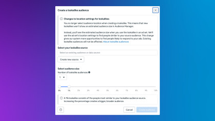 Start with a 1% Lookalike and select to add location targeting. This gives you the highest quality match within your actual service area. A 1% Lookalike in the UK still represents around 400,000 people.