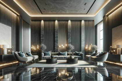 This application is best suited to larger rooms, as it works to create a cohesive and luxurious atmosphere.
